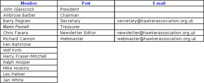 All of the committee were prepared to continue for 2008 except for Percy Collino and Mike Hoskins; we thank them for their big contribution to the running of the Association since it’s creation. Martin Pennell joins the committee and takes over the post of Treasurer from Mike Hoskins.