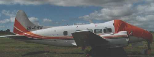 The current owner is Ray Trubuhovich who runs an earth moving business and also has a share in a DH Devon based at North Shore. The Dove, he said, has more powerful engines and is a delight to fly. Unfortunately he had had a ground incident due to low brake pressure on start-up, resulting in some damage to both propellers. These had been removed for repair.