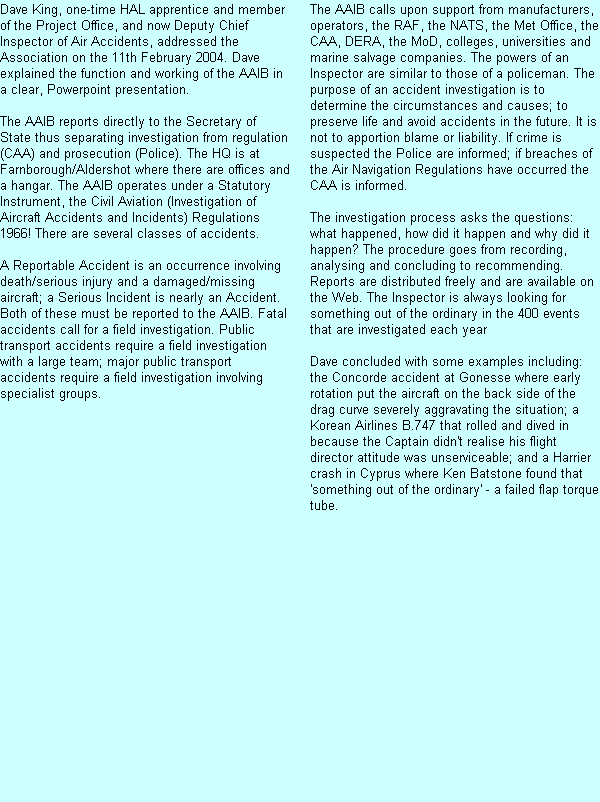 Work of the AAIB