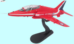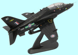 Highly detailed 1/48 scale Hawk T1A models developed with assistance from BAES are available in three paint schemes officially licensed by the RAF: grey - RAF Chivenor 151 Squadron, black - RAF Valley 208 Squadron, and a Red Arrows aircraft.