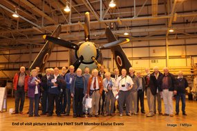 The day started by assembling the 21 Hawker Association members and friends in the Fleet Air Arm Museum café, and by the 1215 target everybody had been registered and been given a 'goody-bag' that was later to have items added by the RNHF. At 1230 the Flight's Display Manager and event host, Katie Campbell, arrived and led the our convoy through the security gate, around the perimeter road and into the Navy Wings office block where a short briefing was given.